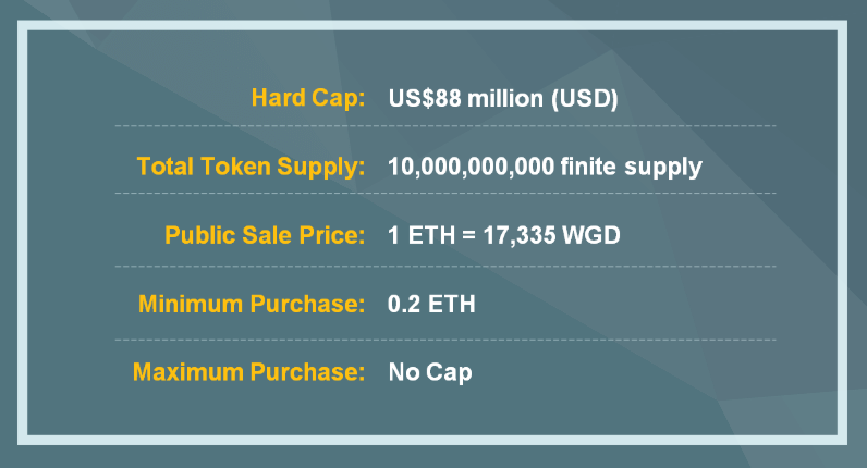 - Token price: 1 ETH = 14,565 WGD (the price is variable)