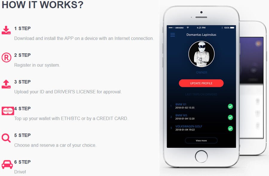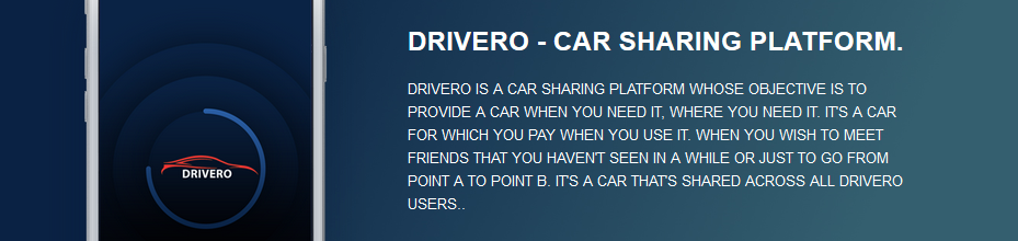 Drivero is a platform that aims to develop a car sharing service, where people can travel safely and more easily. Drivero uses a renewable Blockchain technology in its development, which will provide users with a reliable and smarter carsharing service.