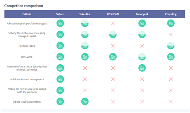 Safinus accumulates competitor best practices and removes their shortcomings. This, together with Safinus’ own innovative solutions will make it possible to create the best platforms, providing security and ease of use for all users.