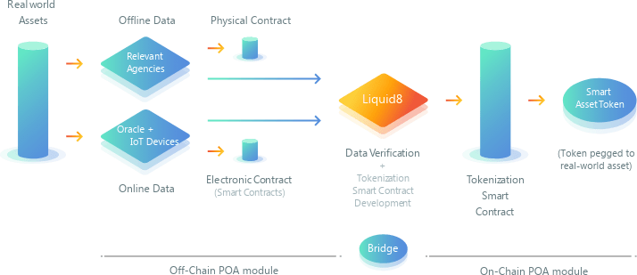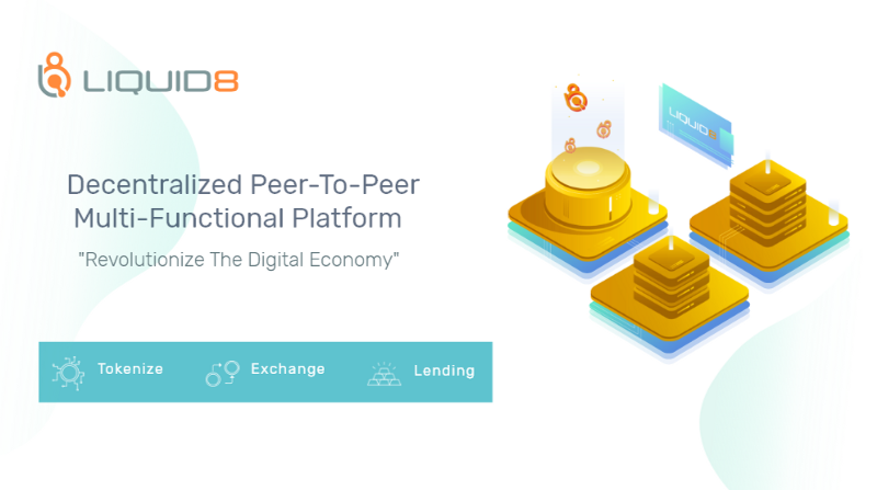 Liquid8 is a decentralized peer-to-peer multi-functional platform aim to revolutionize the digital economy by introducing a digital services platform that offer a complete off-chain and on-chain tokenization protocol to tokenize real-world assets, enabling real-world asset to be represented by digital tokens within the blockchain ecosystem. Tokenized assets can then be exchanged and loaned between platform users via Liquid8's Multi-Asset Wallet.
