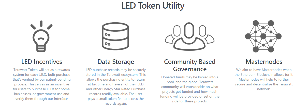 The Terawatt Token will be used as an incentives, it will also serve as a reward system for each L.E.D. bulb purchased,