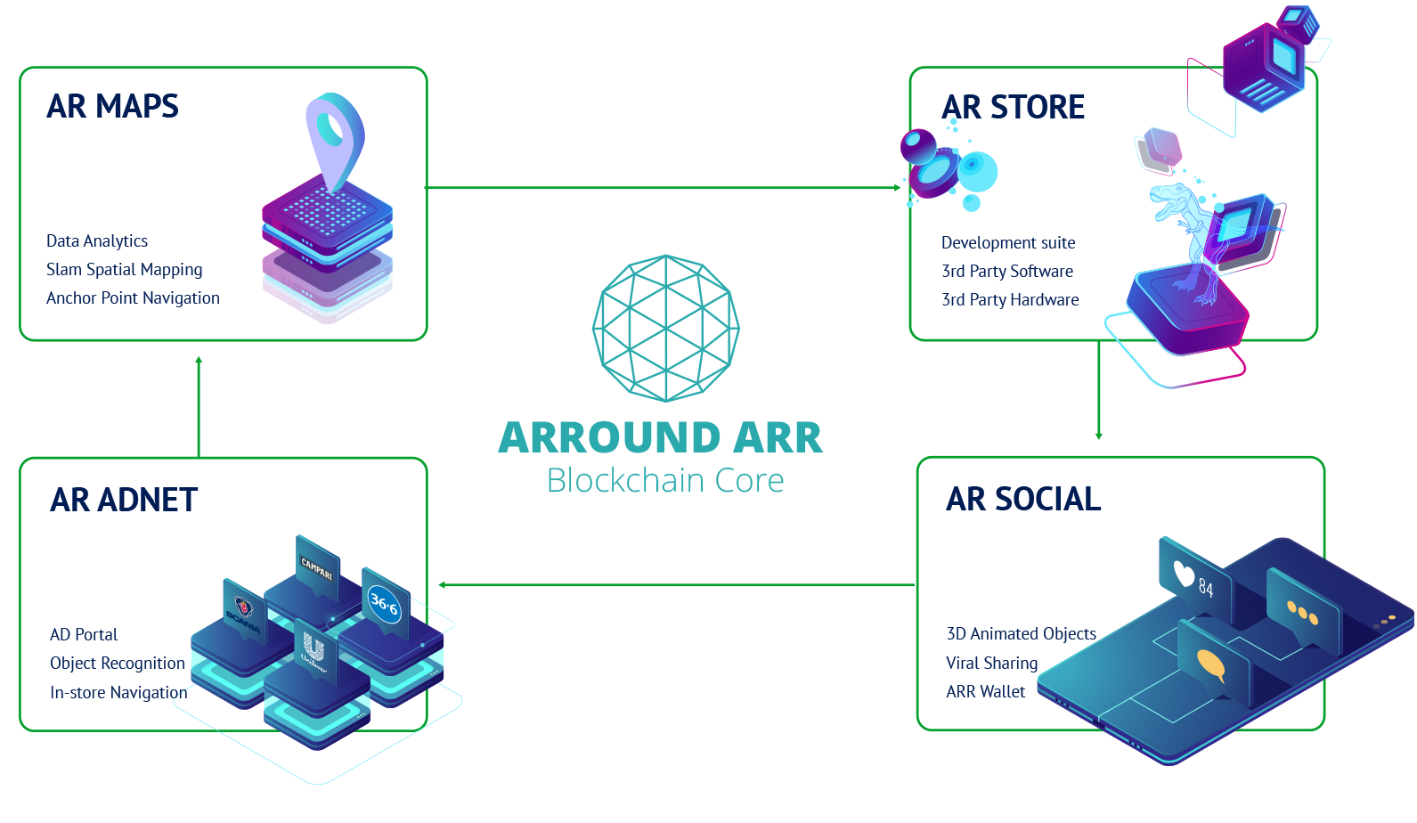ARROUND is a decentralized augmented reality (AR) platform that provides the world with a captivating new digital environment to explore, where millions will be able to create and share their own AR experiences.Advertisers will have a brand new way to engage consumers through the use of creative campaigns in augmented reality, and high-street retail outlets can harness the power of big data and targeted campaigns for the first time in history.