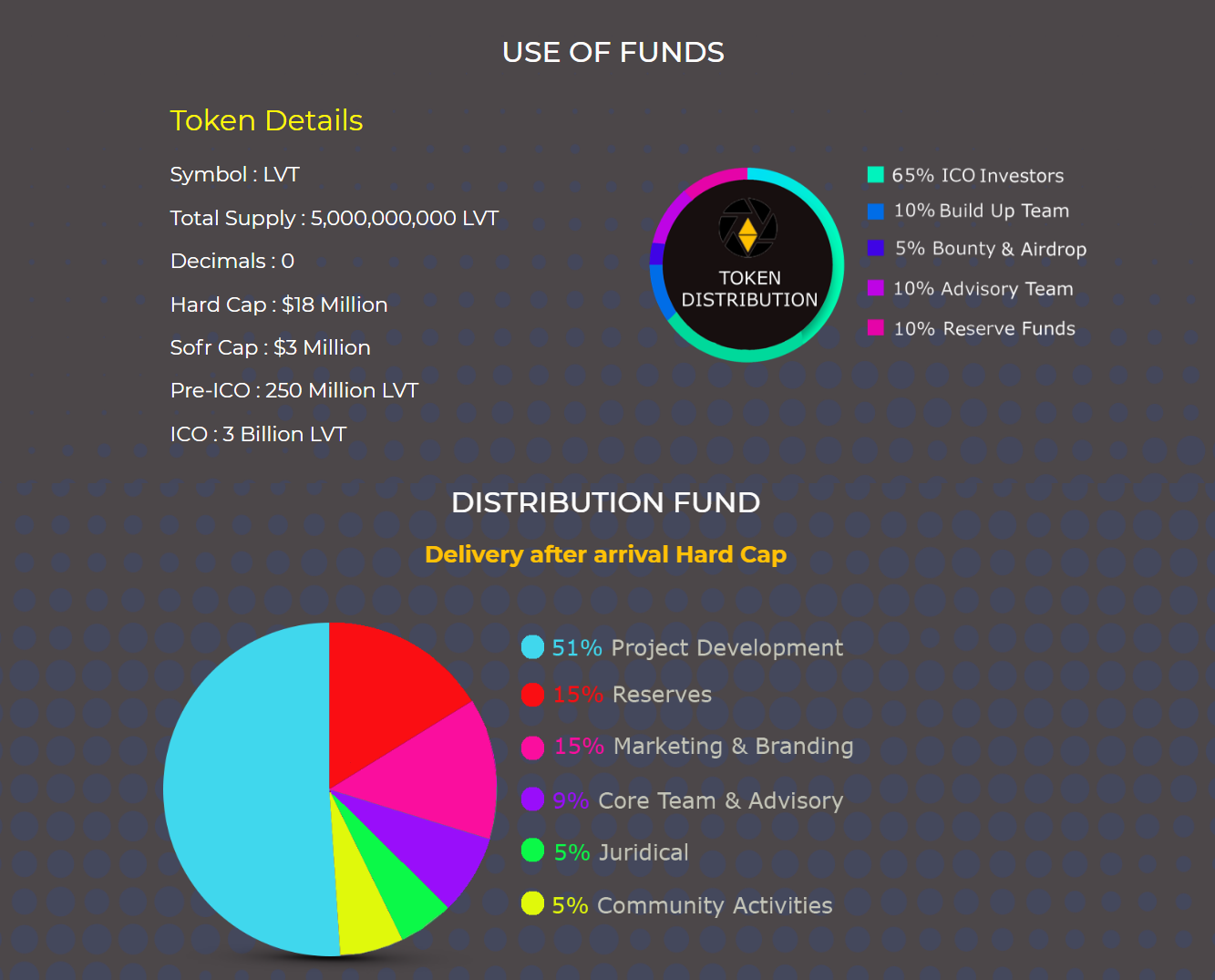Token LVT is the Token ERC20 standard is deployed on the network Ethereum. It is determined in advance,limited supply, easy integration with both the floor and the traditional hierarchy.